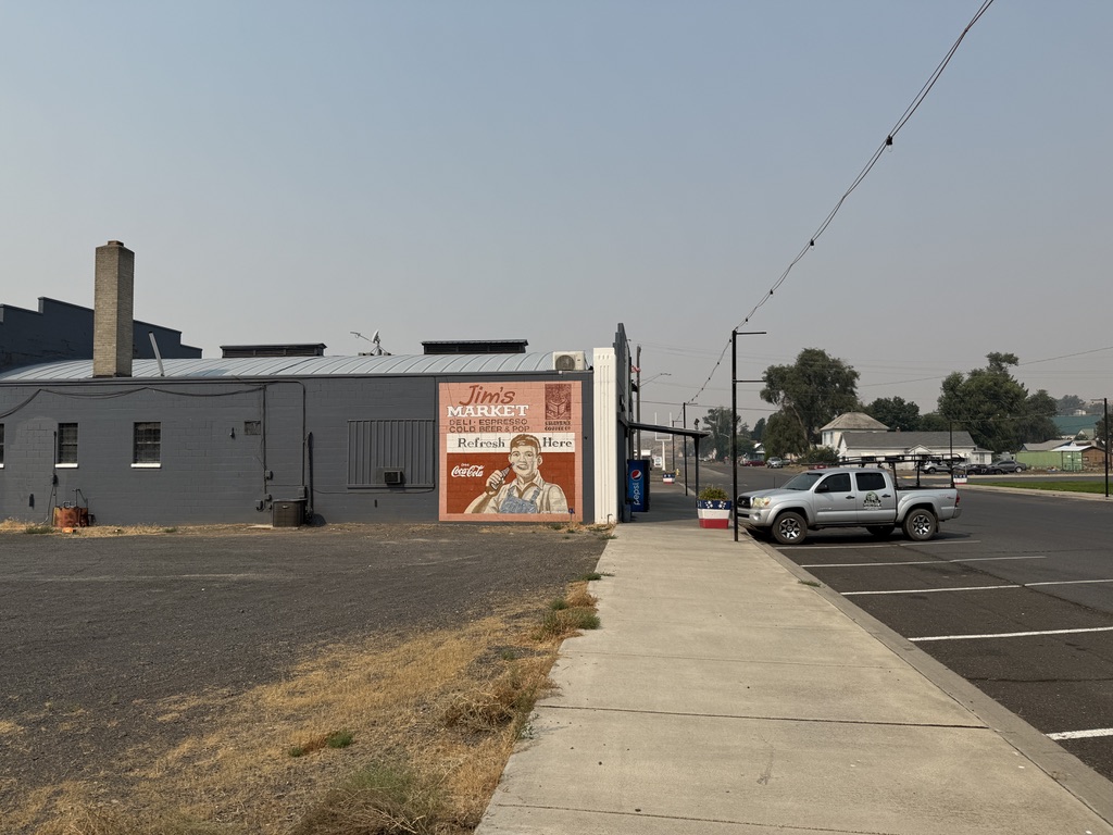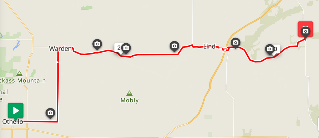 We passed a small town Warden without stopping and and followed Lind-Warden Rd to Lind WA. Lind-Warden Rd was smooth with decent shoulders. But rubble strips made the rideable space narrower. We got to Lind earlier than expected because of tailwinds. I bought from the well-known Jim’s Market two fried burritos for lunch with other snacks. This Market makes arrangement for bikers to camp in the town.