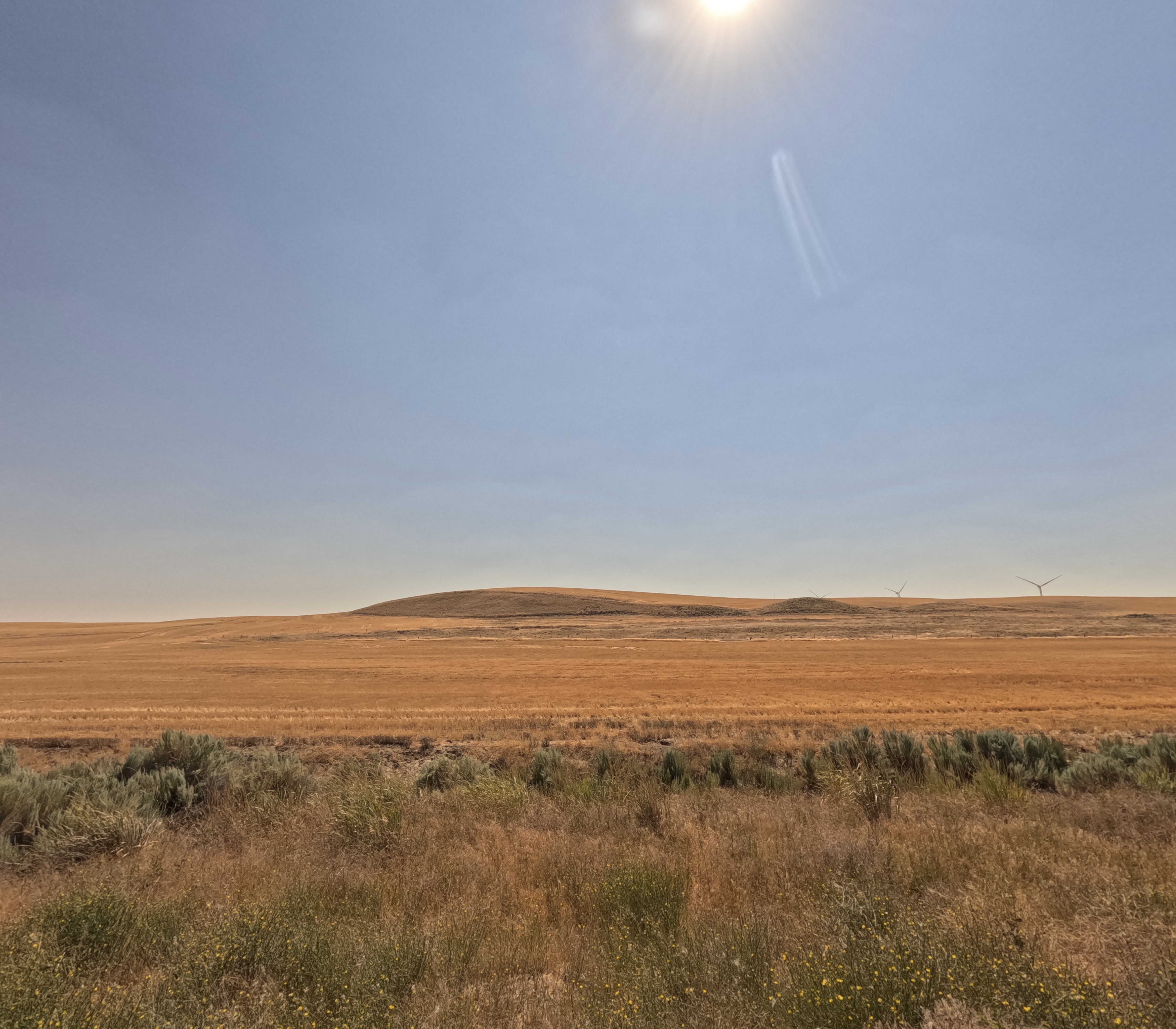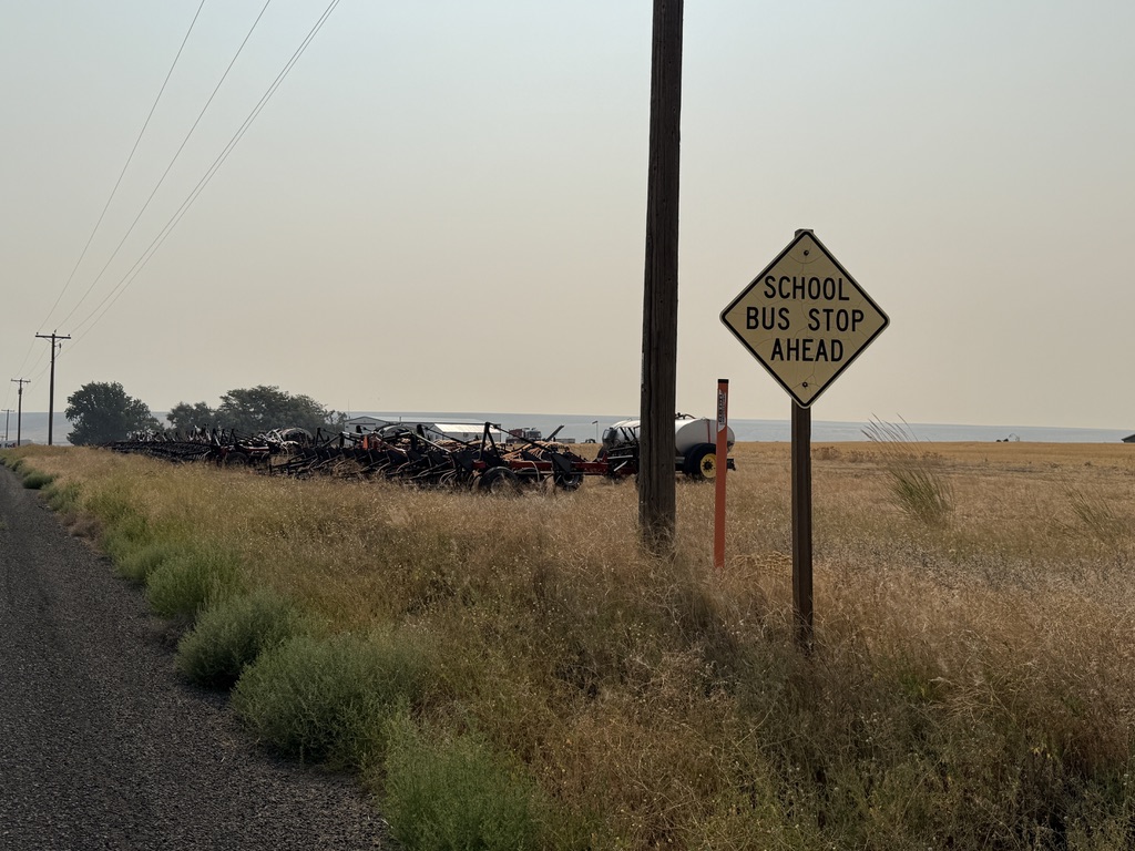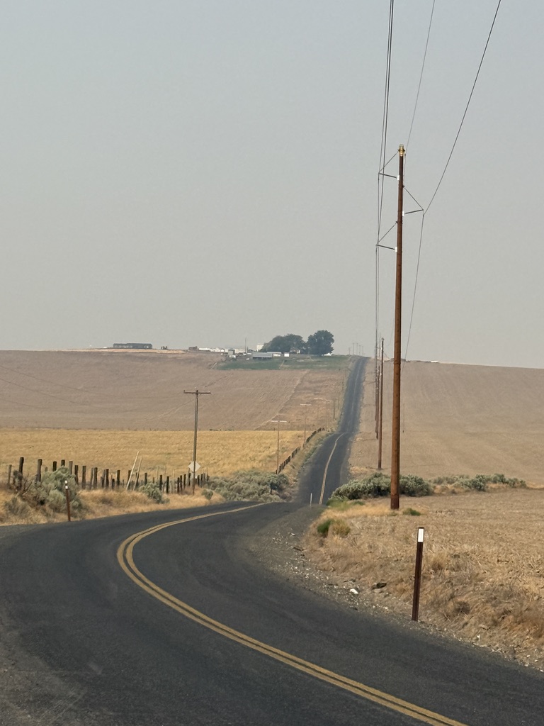 We started early (6:30 am) toward Lind WA where we planned to camp that night. Soon we sensed that the air was smoky. Later we learned that there were wildfires south of us. Learned from the lesson of running out of water, we needed to carry more water. But we have limited bottle capacities. An idea came to me to carry cucumbers, which can be watery snacks.