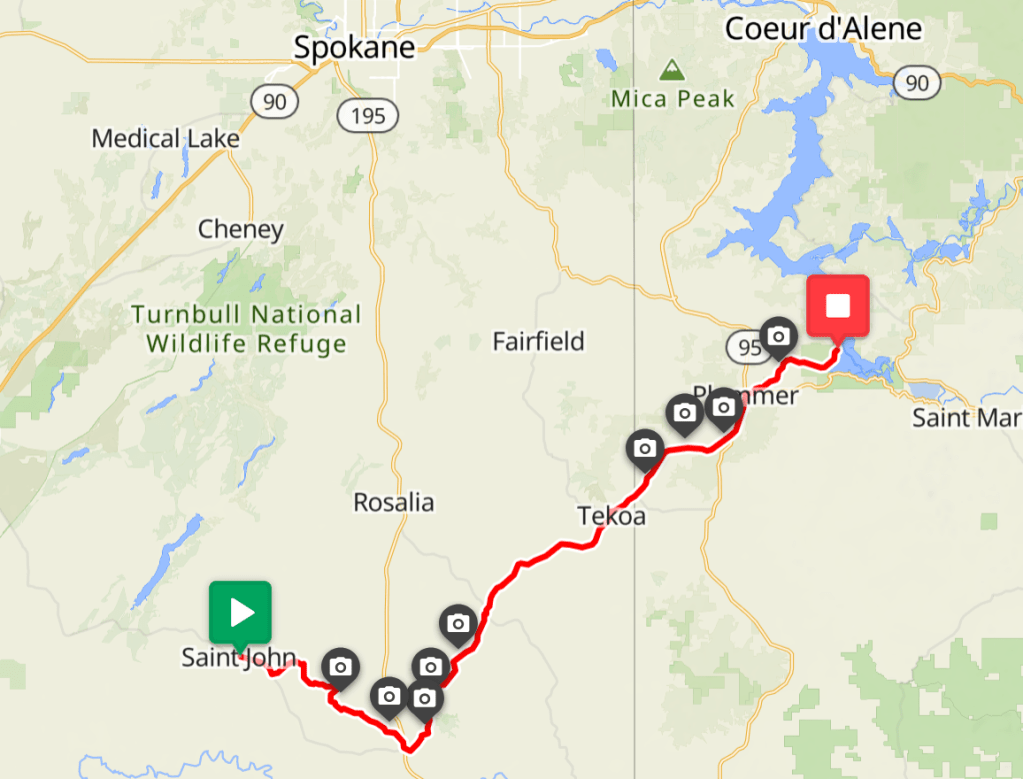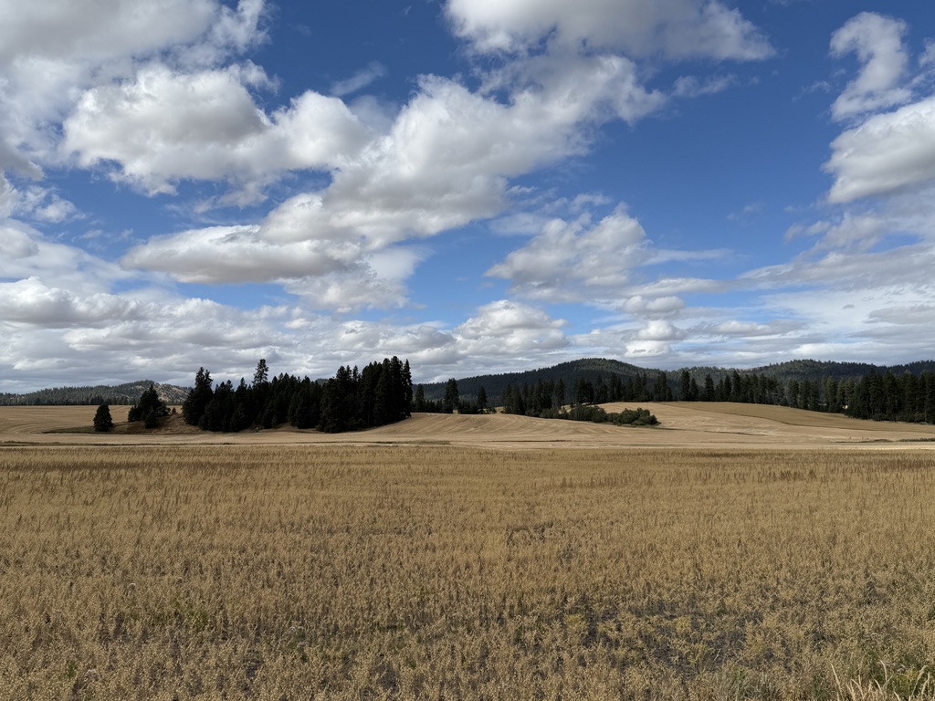 This rough dirt road extended for 20 miles on and off before we got on Oaksdale Rd which was paved. We managed to cover the distance we planned to. I have noticed the perpetual cricket calling song from both sides of the road. It was exciting to cross the state line into ID. We considered this our second accomplishment on the trip (the first was crossing the Columbia River).