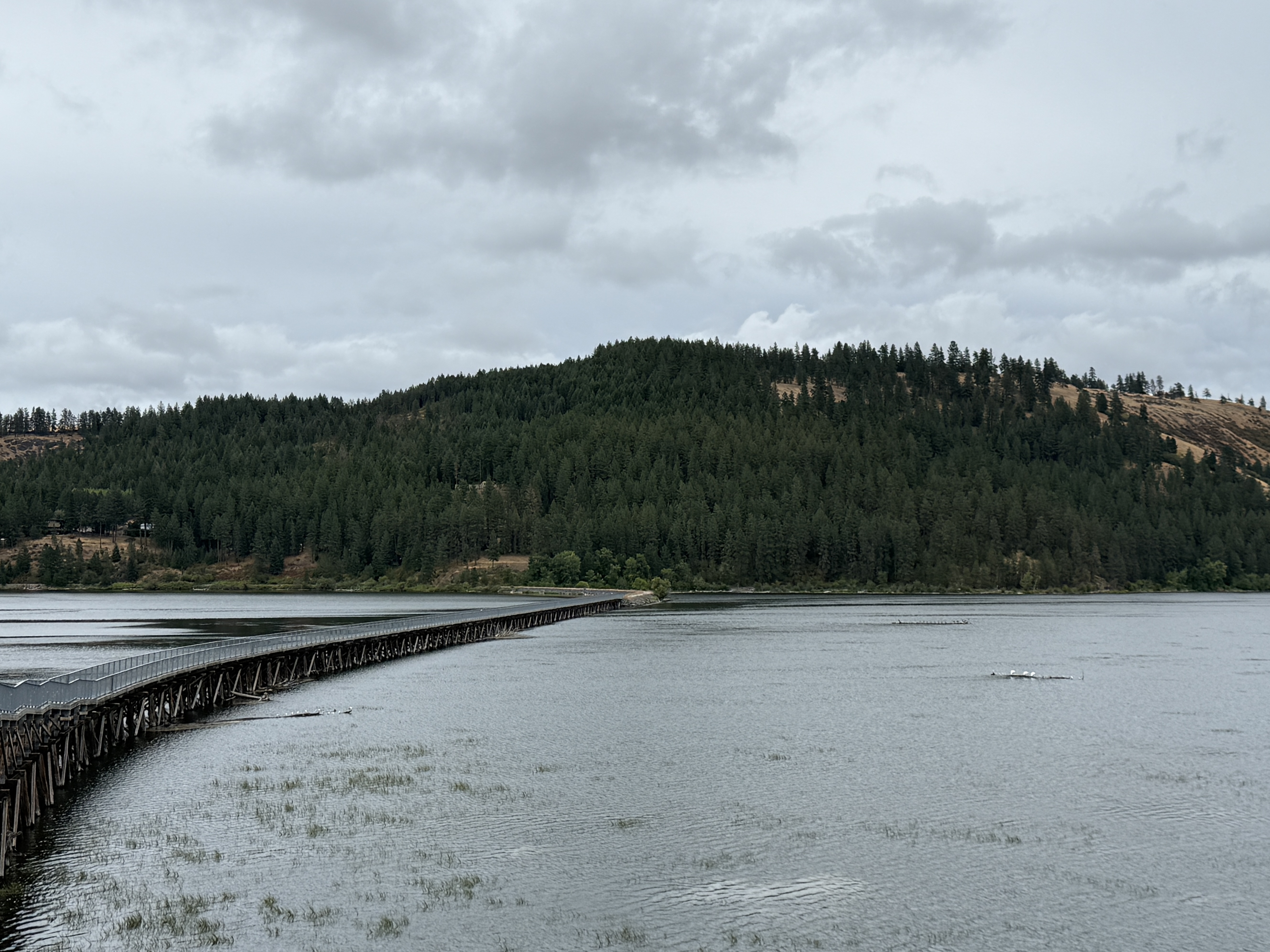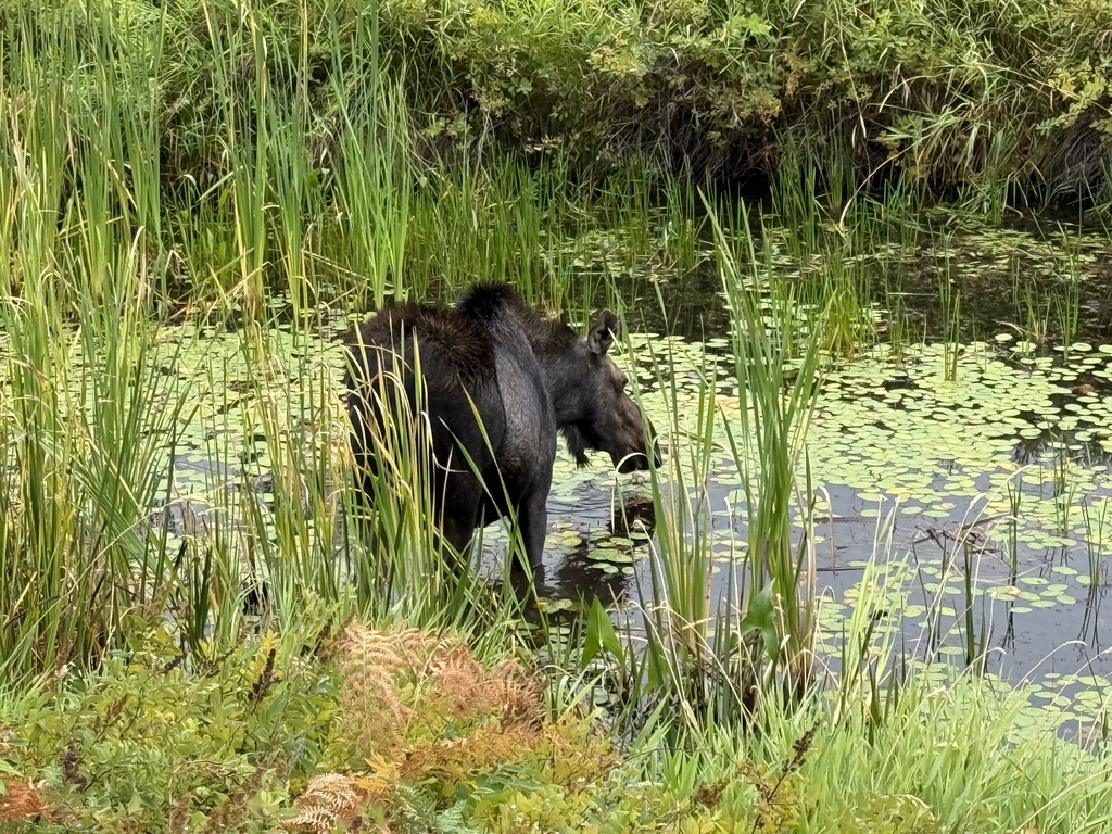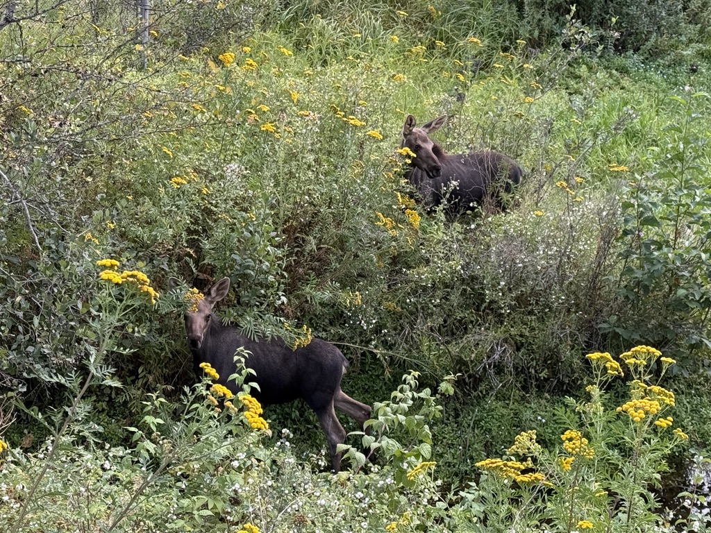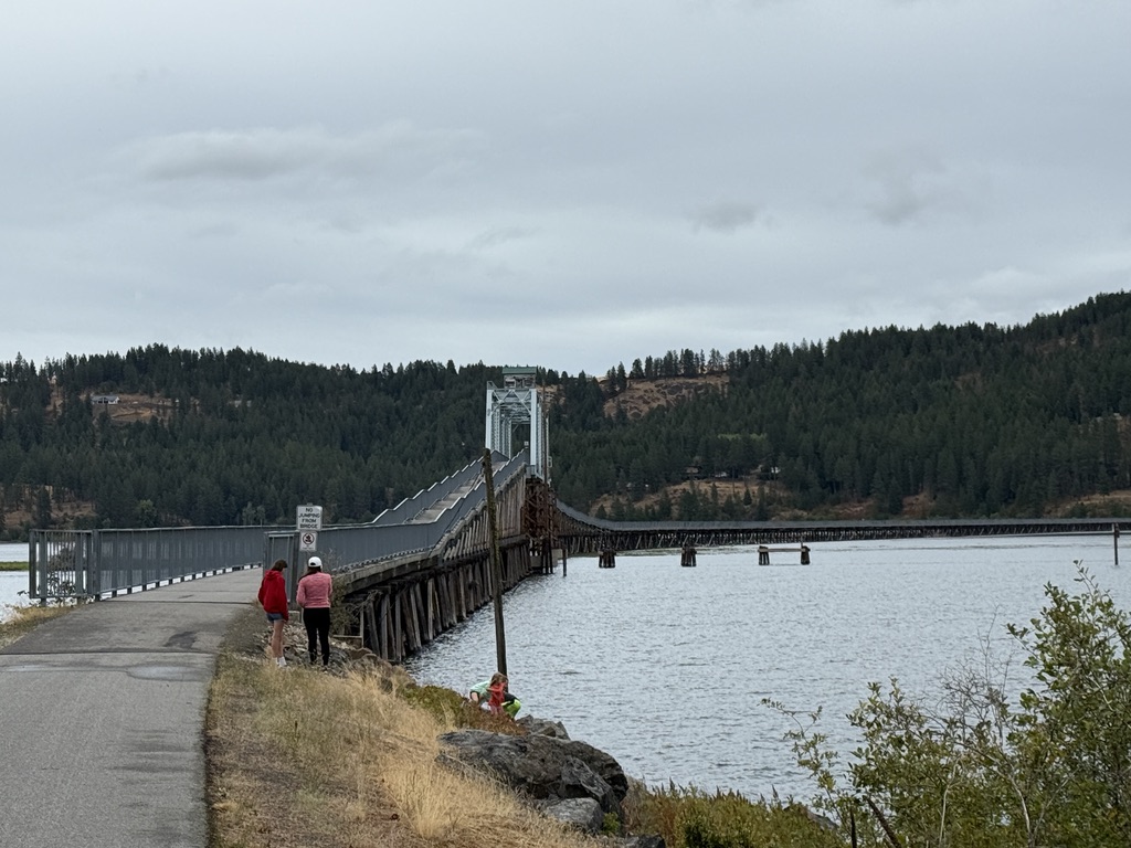 We rode on the Trail of Coeur d’Alenes to the end. It is one of the best in the US. It goes through the Coeur d’Alene River Wildlife Management Area with many lakes and rivers. There are toilets and chairs every 10 miles or so. It attracts bikers from all places. I met bikers from Lake Tahoe, Atlantic, and Omaha. We saw one adult and two junior moose next to the trail.