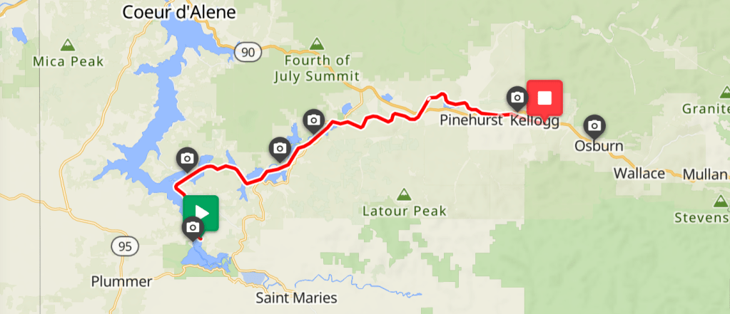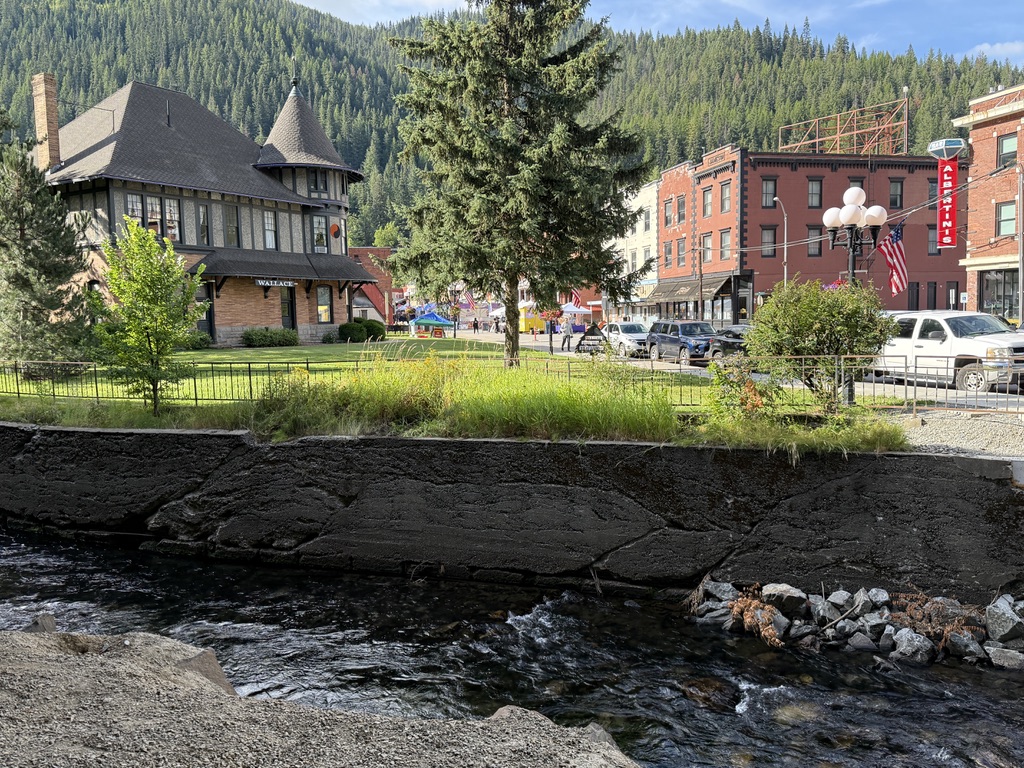 Settled in Wallace Inn, ID. It is a nice two-floor hotel but without an elevator. Our room was on the second floor. Hotel guests had fun watching us carrying our bikes and bags up and down on the stairs in the grand hall of the hotel. There was a Huckberry festival that weekend. But we didn’t have time for that.