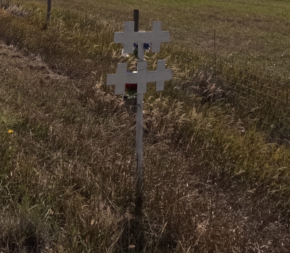 Saw five crosses together at a roadside memorial. You have to feel the pain of those who might have survived the traffic accident there and the victims’ extended family.