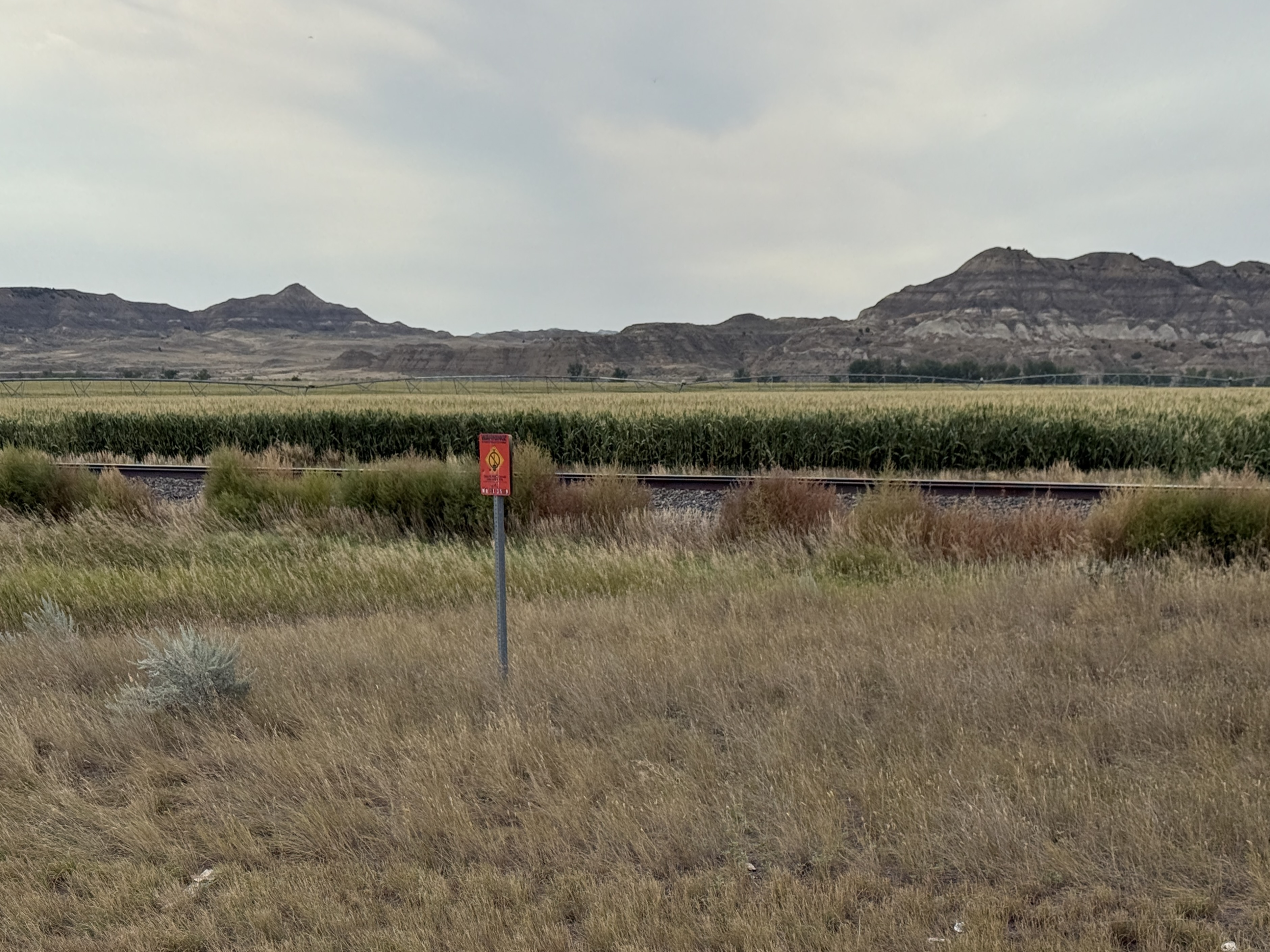 Continued to suffer from scenery fatigue. The same beautiful landscape under the big sky, nothing spectacular anymore. Even the Yellowstone River looked ordinary. The contrast between irrigated green and natural brown was nevertheless stark.