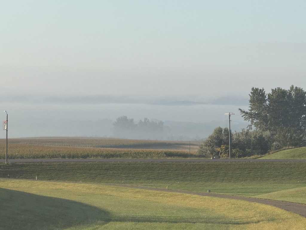 The morning was foggy. Luckly, there was no traffic. There was a nice trail, part of the Bismarck Trail System, along University Drive out of the city southeastwards.