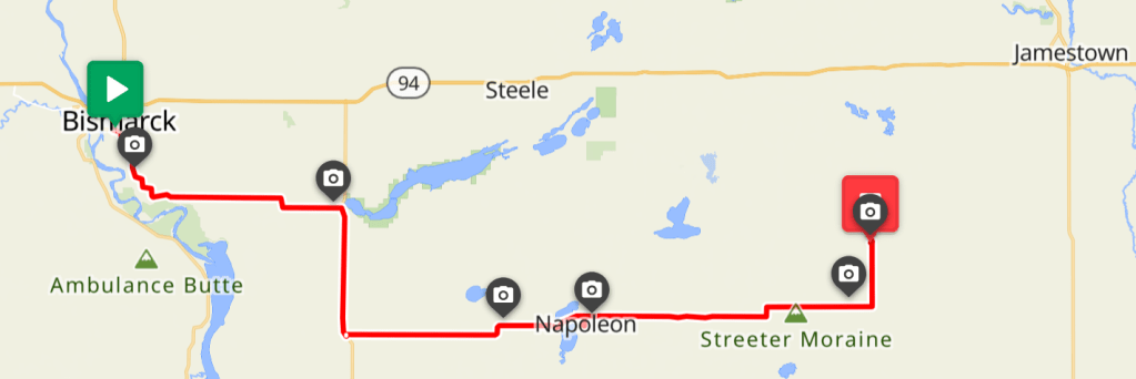 My original routes through ND were to Jamestown and Fargo along I-94, and then turn south to Fergus Falls, MN. I decided to take a short cut and go to Fergus Falls directly. This required me to go through a very remote areas with few towns far apart from each other. Peter went through this and gave me some advice.