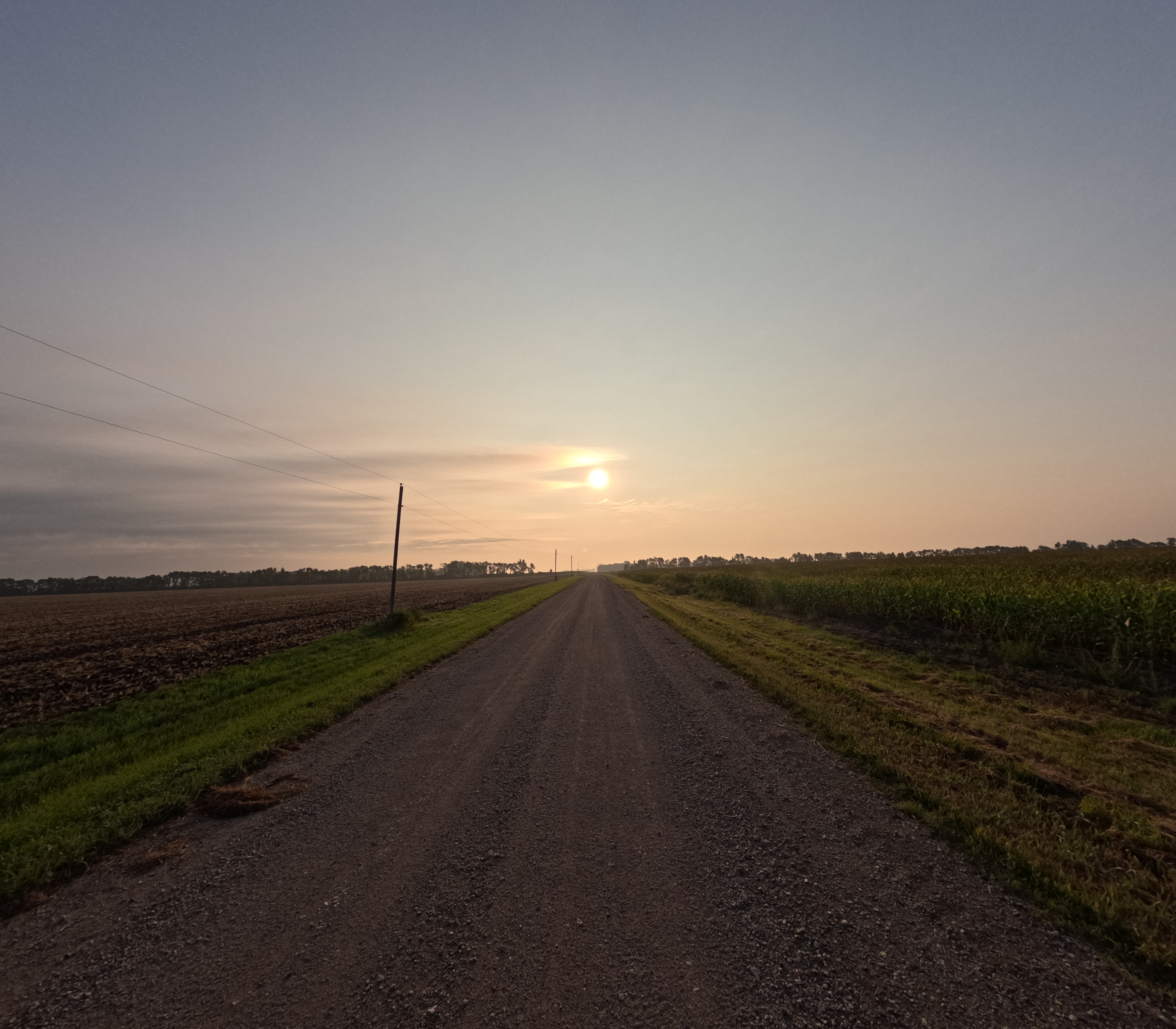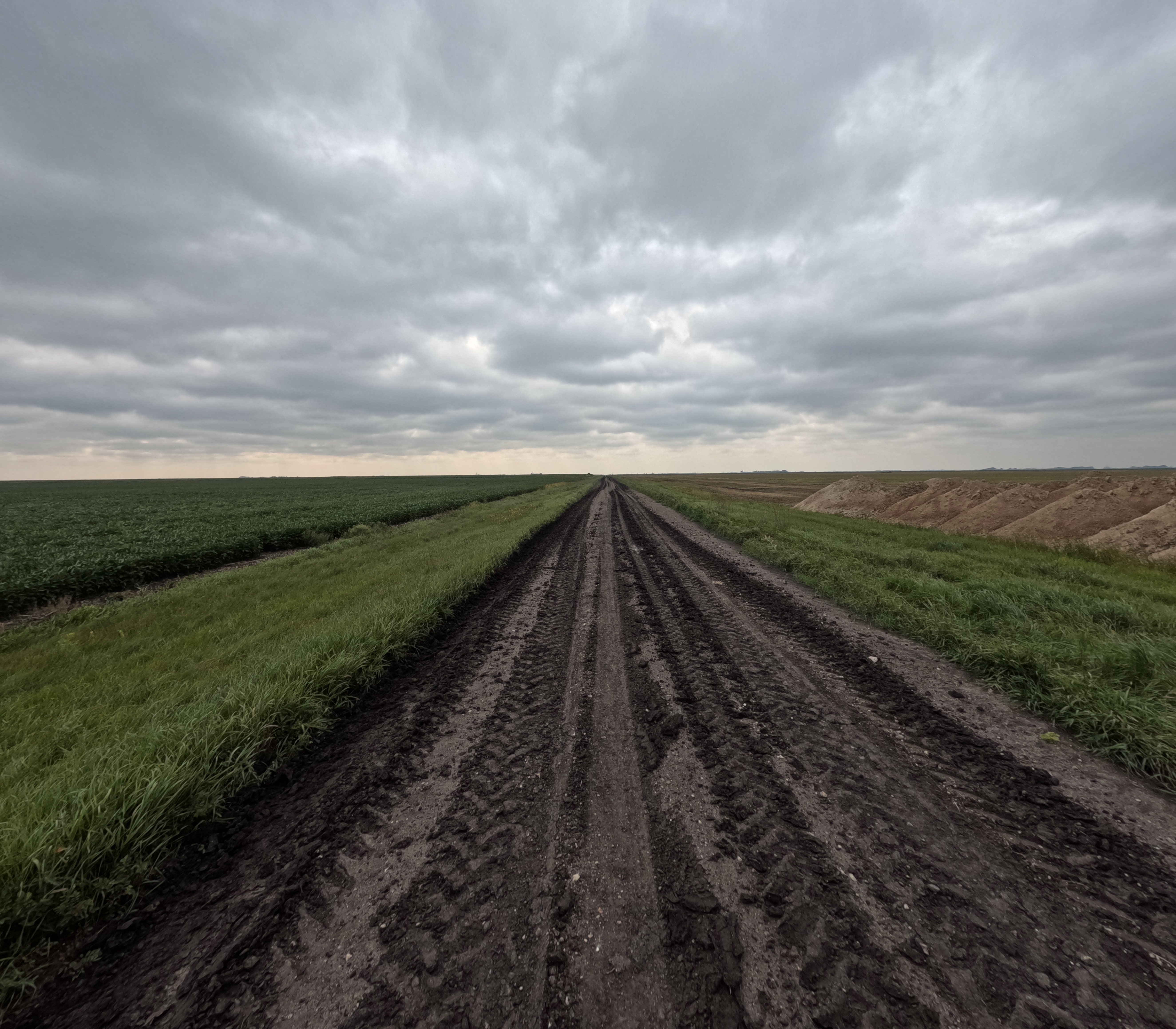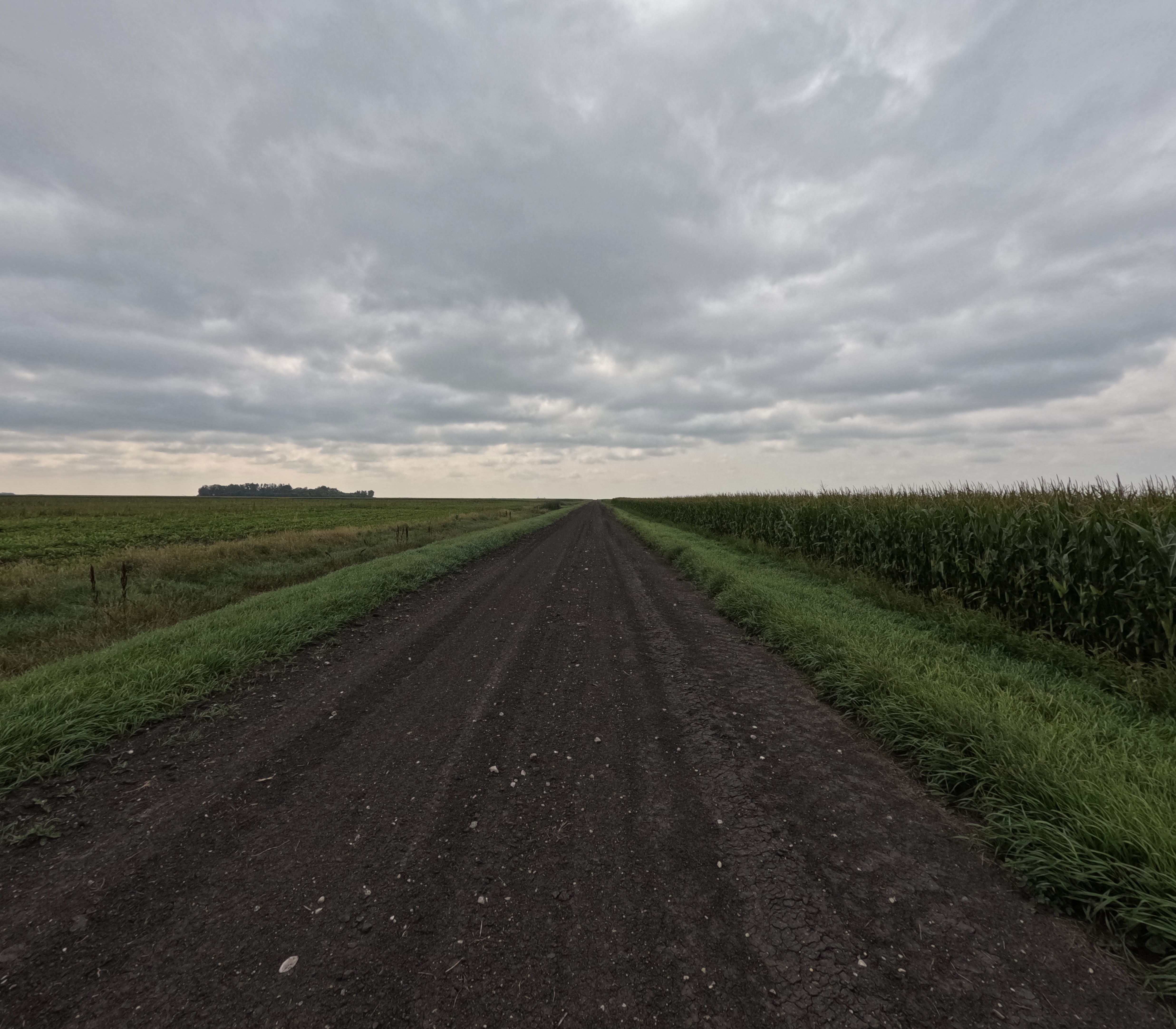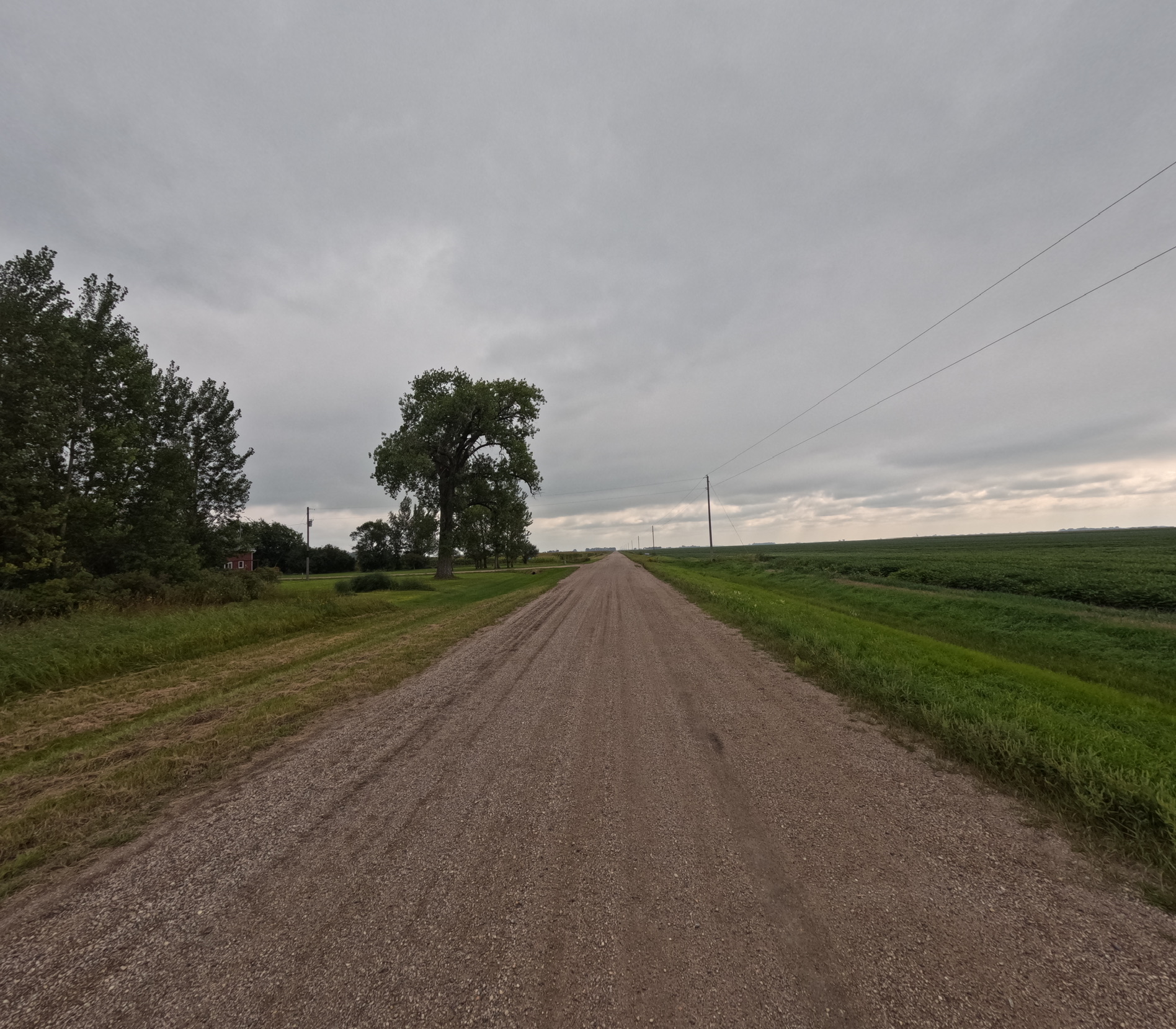 Out of Kindred, I was soon on dirt farm roads that were used perhaps only by farming vehicles. Some of them were smooth but dusty. Others were next to impossible to ride. I was wondering again whether I was the only fool who ever rode a bike on these roads. I noticed how dark (black) the soil was, in contrast to the brown and red soils I had seen before. For almost the entire time on these farm roads, I was the only soul.