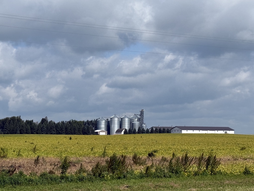 I didn’t pay much attention until now to the differences between old and new elevators. The old elevators were mostly square in shape and built of woods or concrete. The new ones are all metal. Functionally, they both lift grains to their tops from a pit at the bottom where grains are dumped after being transported from the field. At the top, grains are sent to different bins to store and from there to load on trucks (or train in the past) to be transported elsewhere. The difference is that all bins are inside the old elevators, hence a single structure, whereas the new ones are separated round structures.