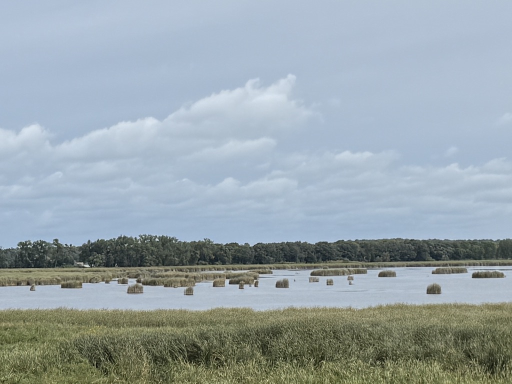 Out of Fergus Falls, I was soon on the Central Lakes State Trail. This was nicely maintained and paved. It passes many lakes, most of them small without names. Some leaves on the trail side had turned into their fall colors. I was caught by a shower. My hands and feet were very cold. I had to find a store (Dollar General) to get an extra pair of gloves and socks to put over what I already had. I used them many times later on the trip in the morning when temperature was below 50s F. I didn’t anticipate the fall temperature would come so early.