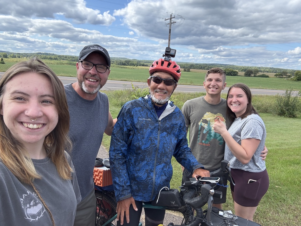A road closure brought me to four people in front of a house for directions of detours. They all laughed when they learned that I was from Seattle. The young couple were also from Seattle. The other couple wanted to contribute to the fundraising for AHA and copied the QR code. We took selfies and said goodbye. Their suggestion of the detour was much better than what I would figure out myself. It went through Lake Wissota instead of residential areas or farmland.