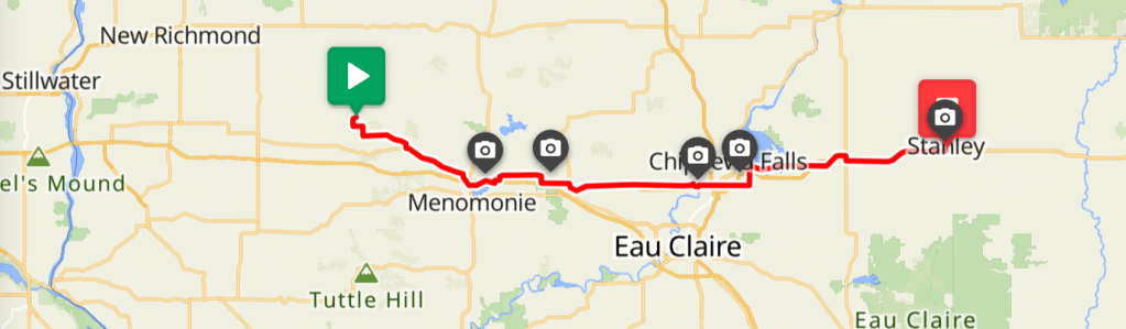 I woke up late in the morning. Peter already packed and started his ride from his campsite. We texted each other and planned to meet in Menomonie or some other town for lunch. But we managed to miss each other. I decided to stop at Stanley and booked a hotel there, expecting Peter to join me. He didn’t make it. Ironically, this is how we departed the second time.