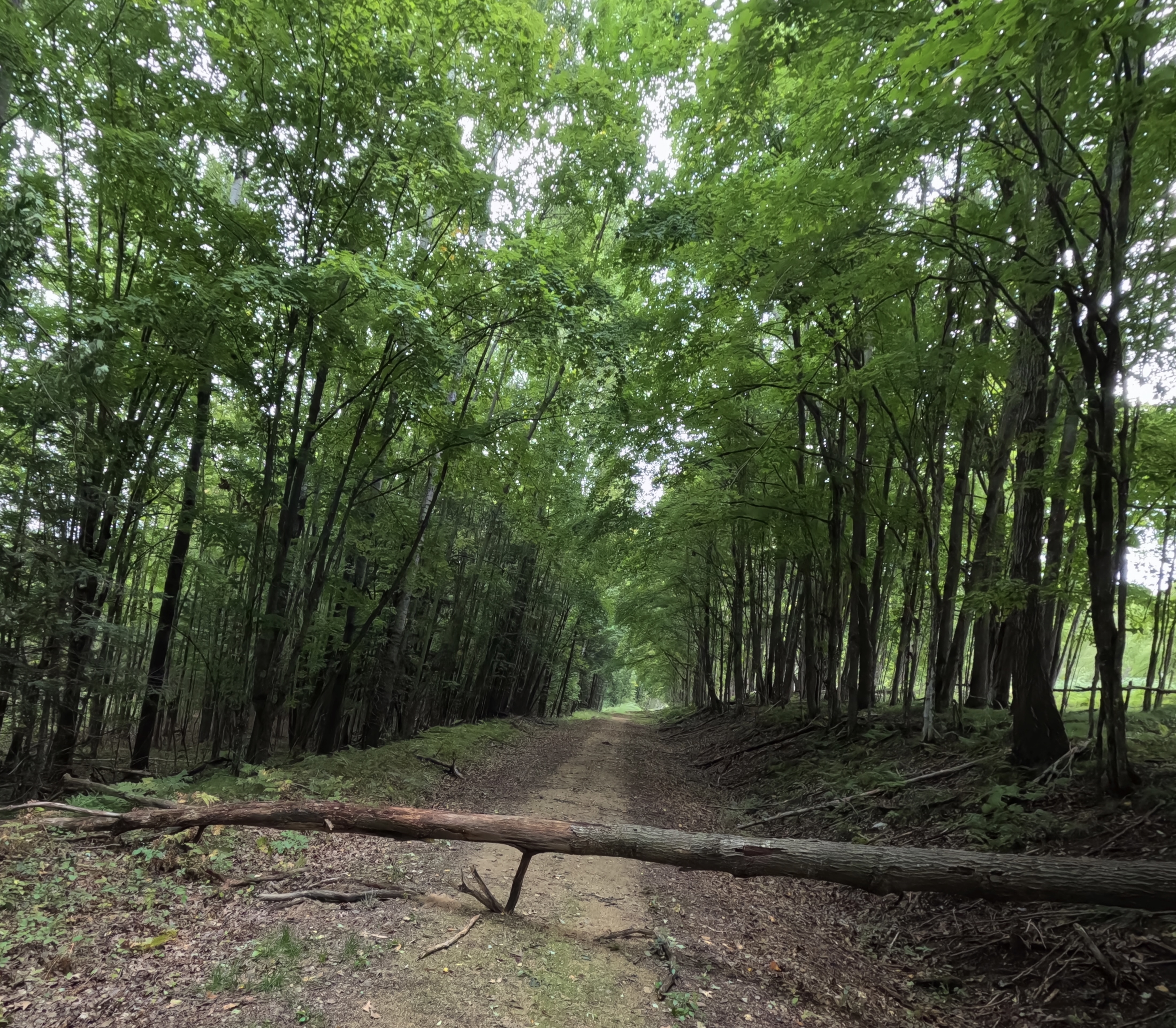I met Dan on the trail. With a bike and a big shuffle, he was voluntarily fixing potholes on the trail. He told me that the park department took care of fallen trees but potholes were not their priority. You must be grateful to people like Dan who care about other users of the trail. Later I went through a section of the trail with many fallen trees removed but one left there to greet me.