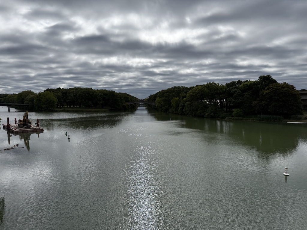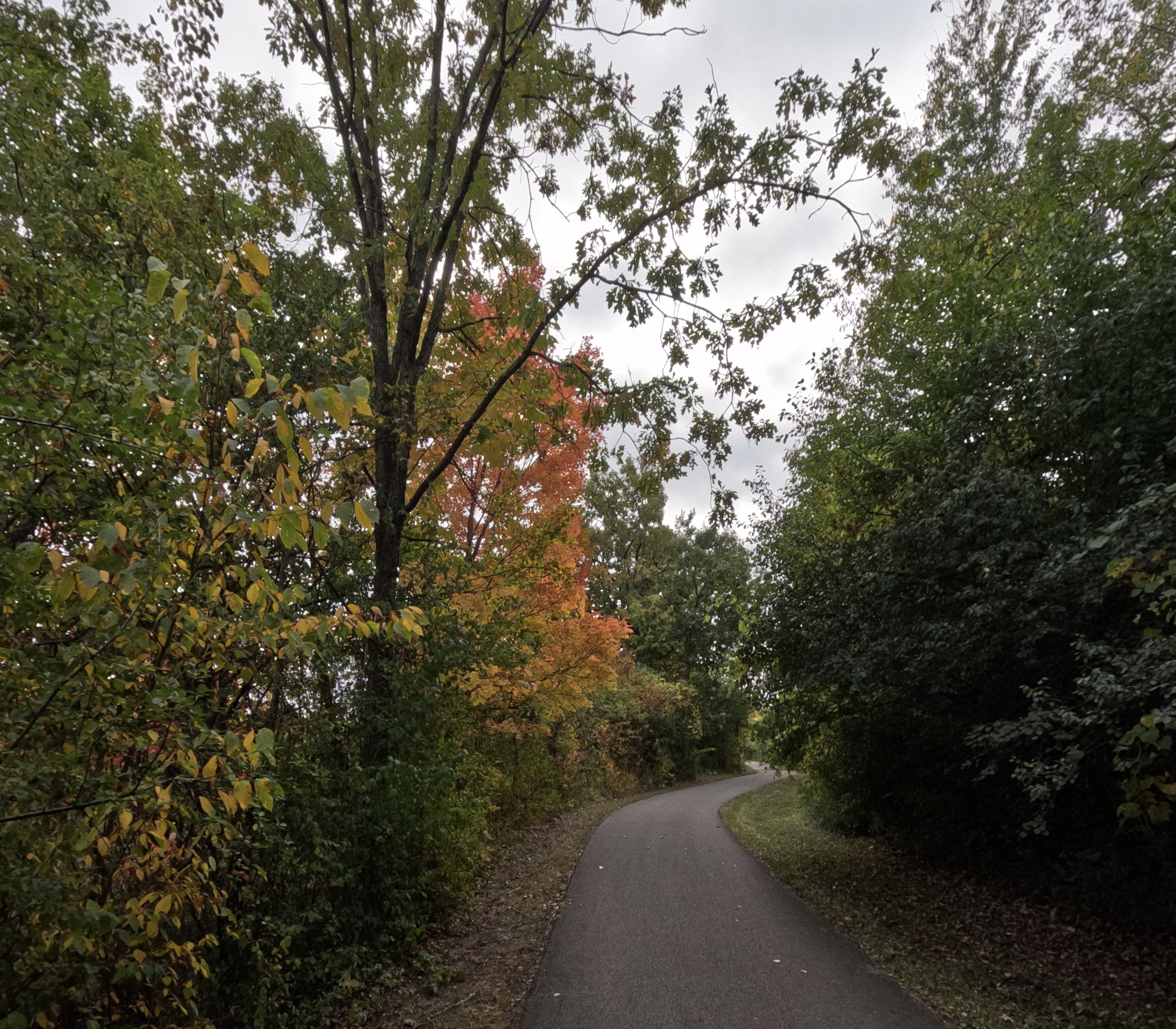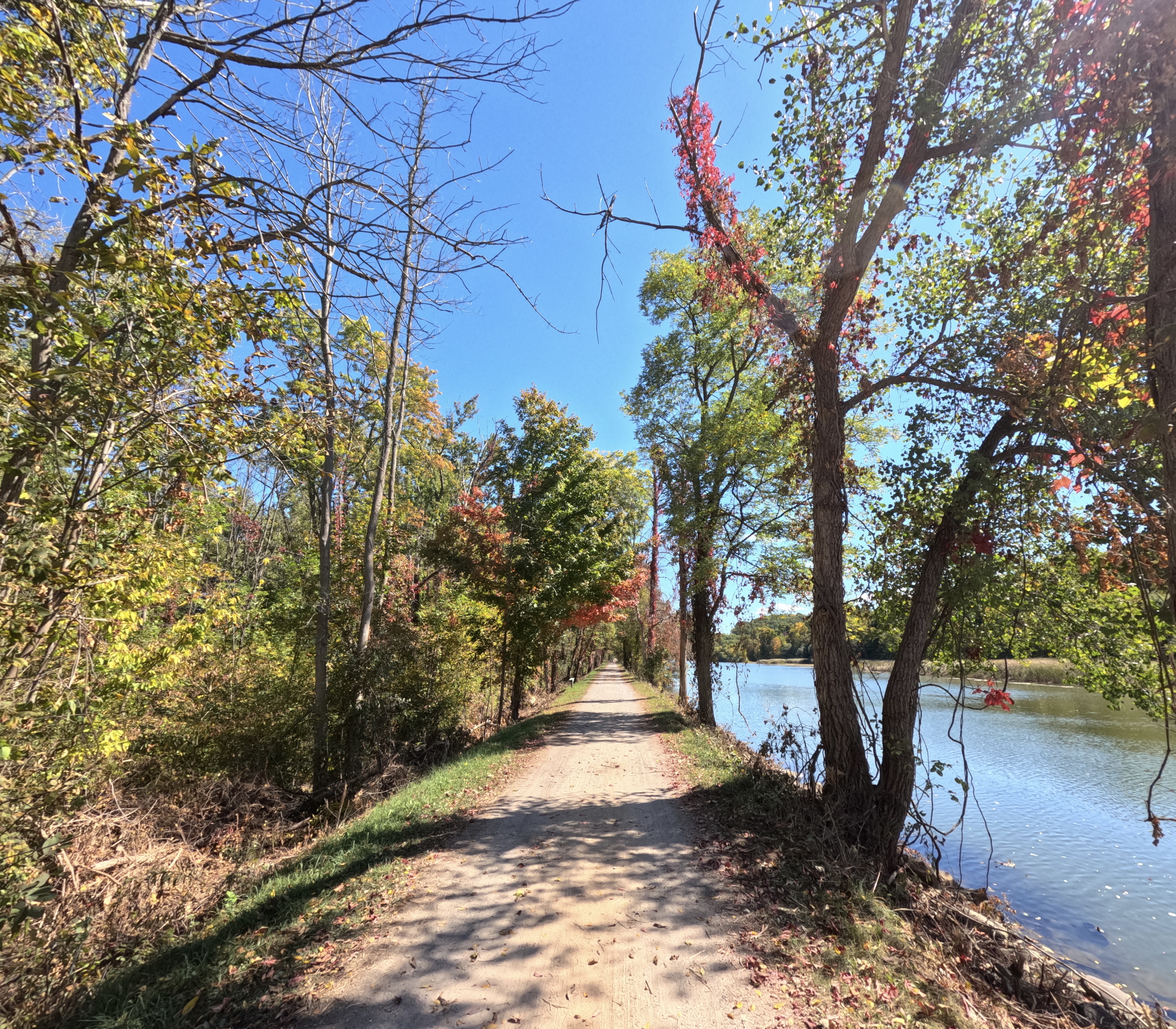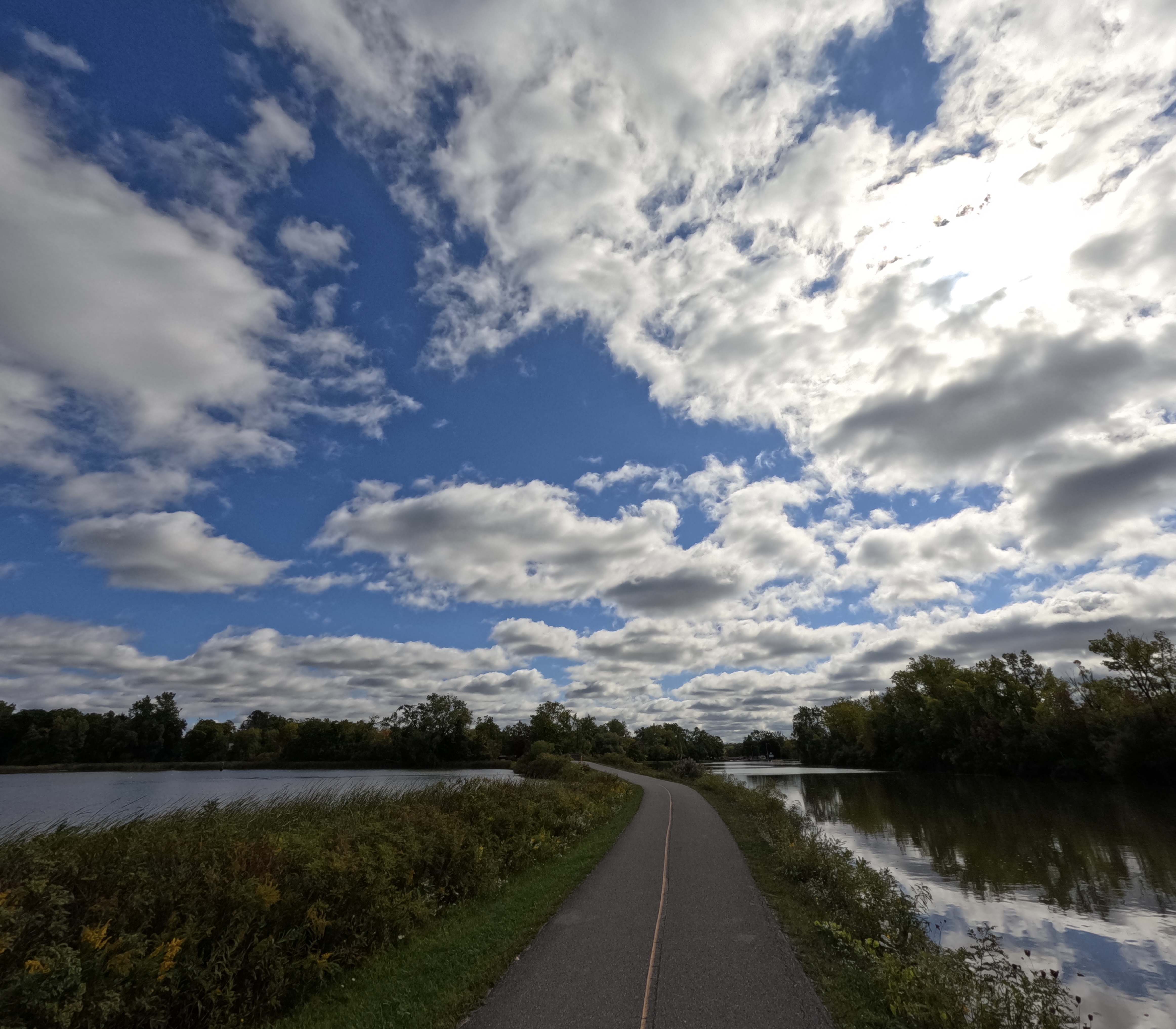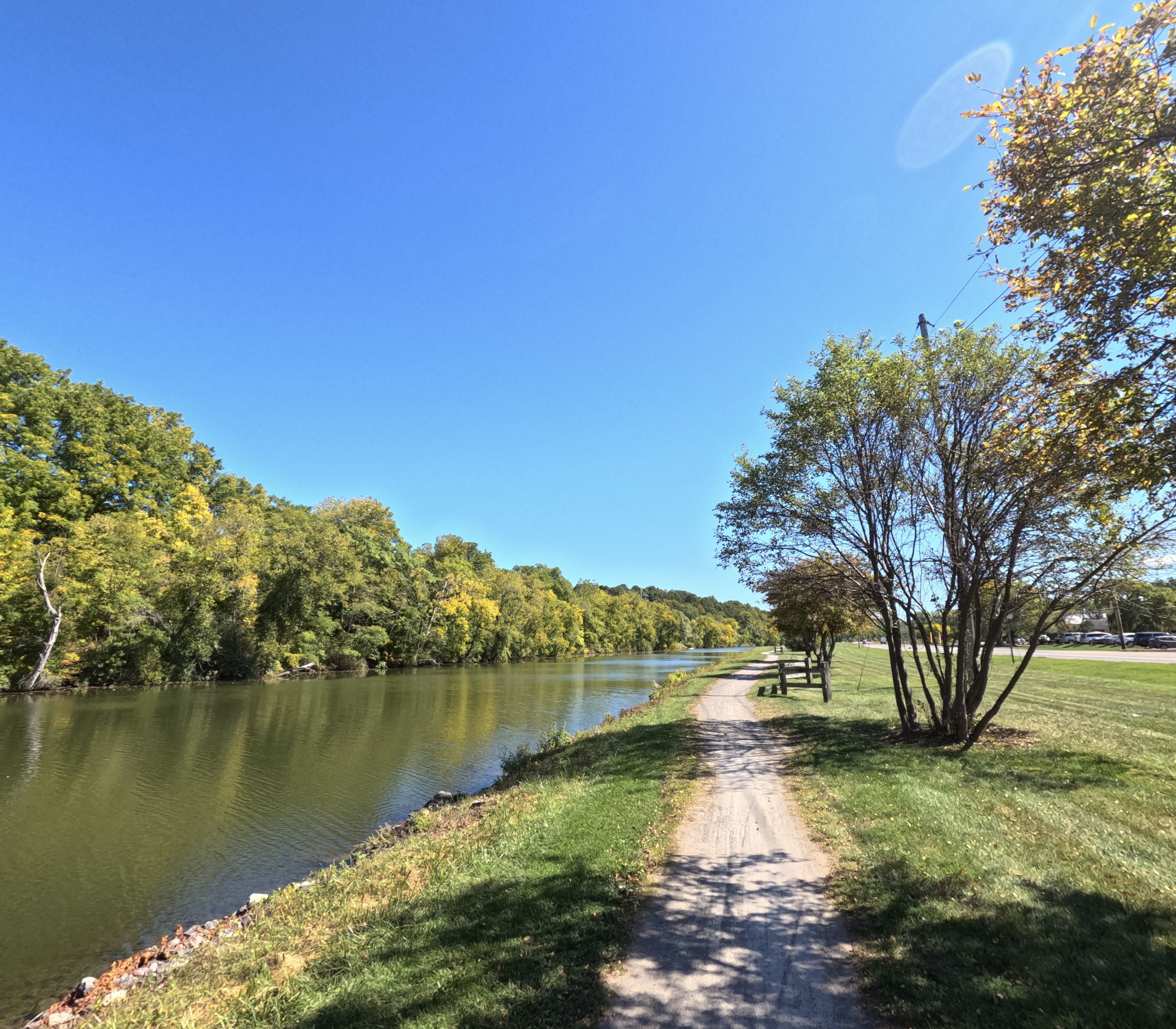 Continued on the Erie Canalway Trail. The colors along the trail reminded me that fall had been here. Outside Rochester, the canal met and crossed Genesee River, creating a grand view of water. Among many bikepacker I met, one had rode coast to coast three times. It could be additive, I guessed.
