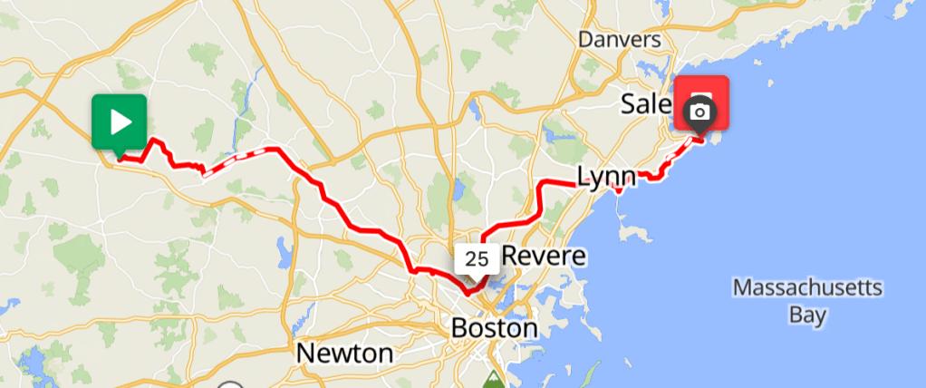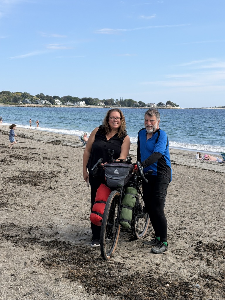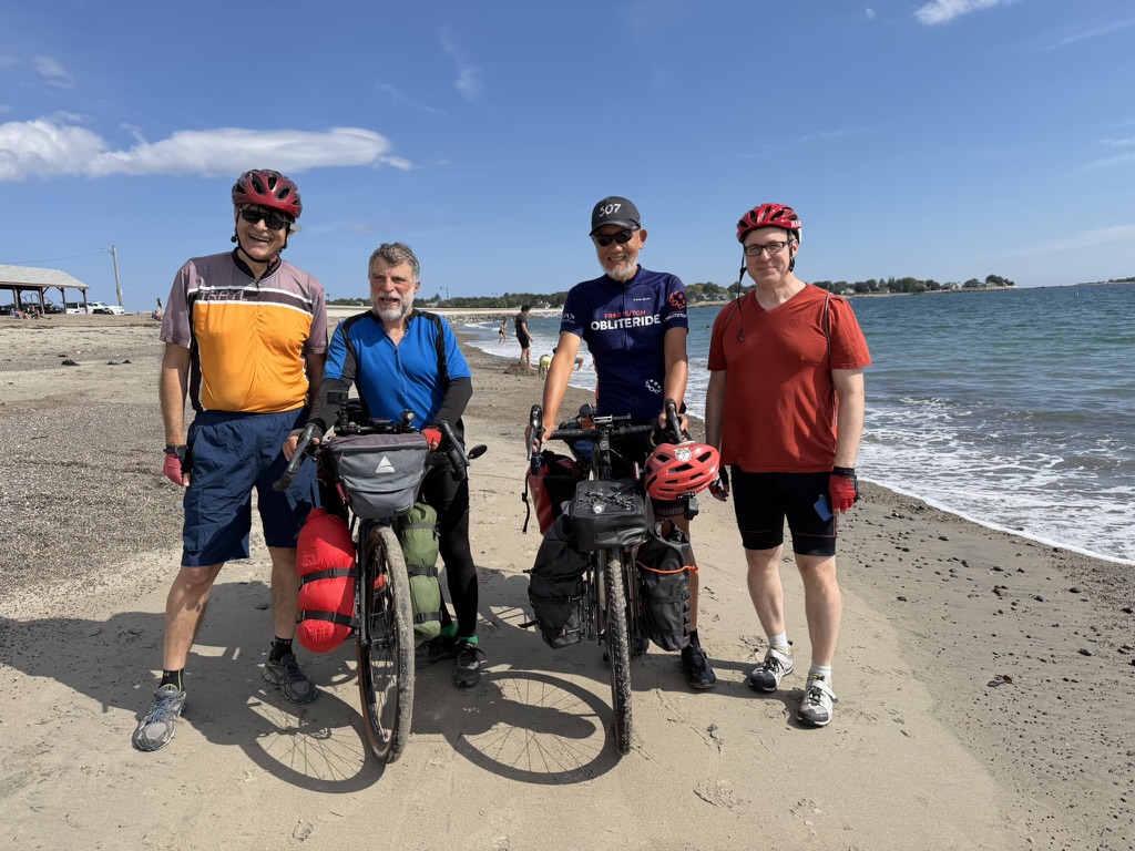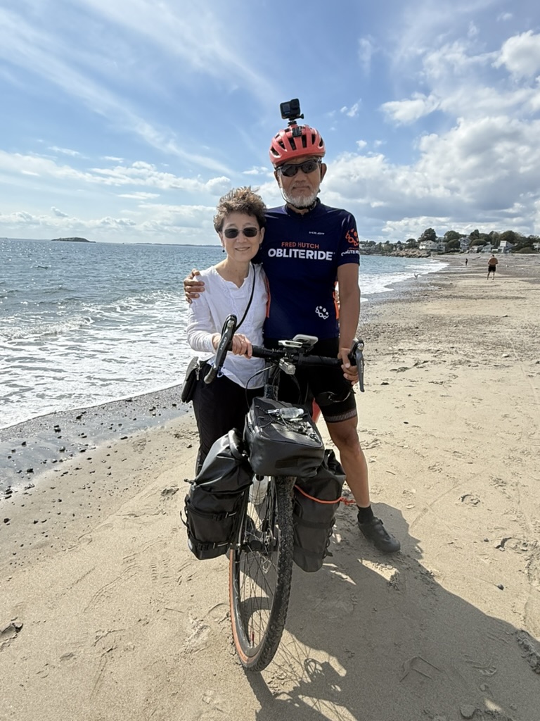 My last day of the trip. Peter and I rode several local trails to Devereux Beach at Marblehead, MA. Peter’s friends Younes and Ben joined part of the ride and escorted us to the beach. Shuyi and Maria were there to greet us. We dipped our front wheels in the Atlantic water and declared the coast-to-coast ride officially completed. We had champagne there. Peter and I couldn’t be happier. I flew home the next day.