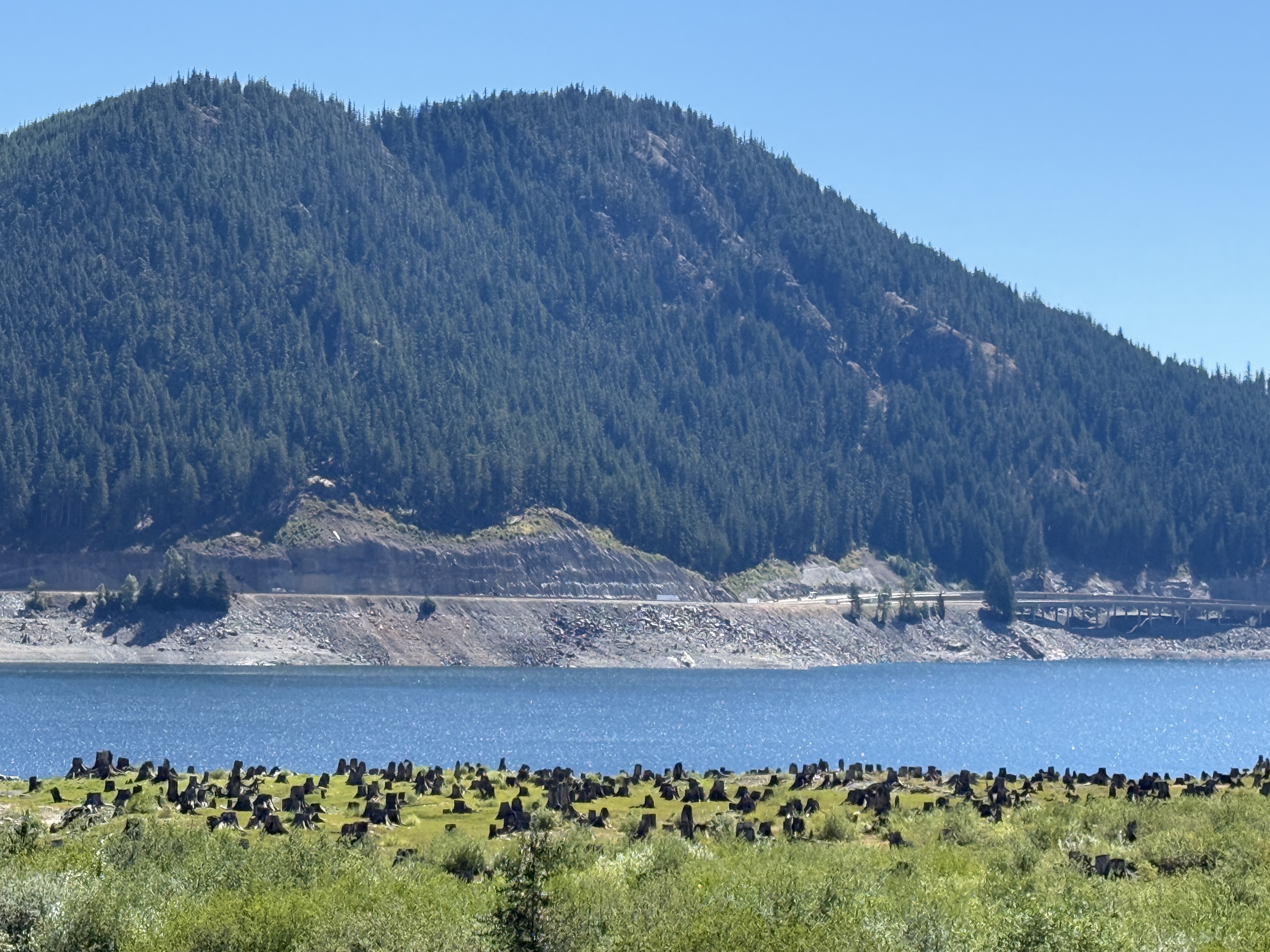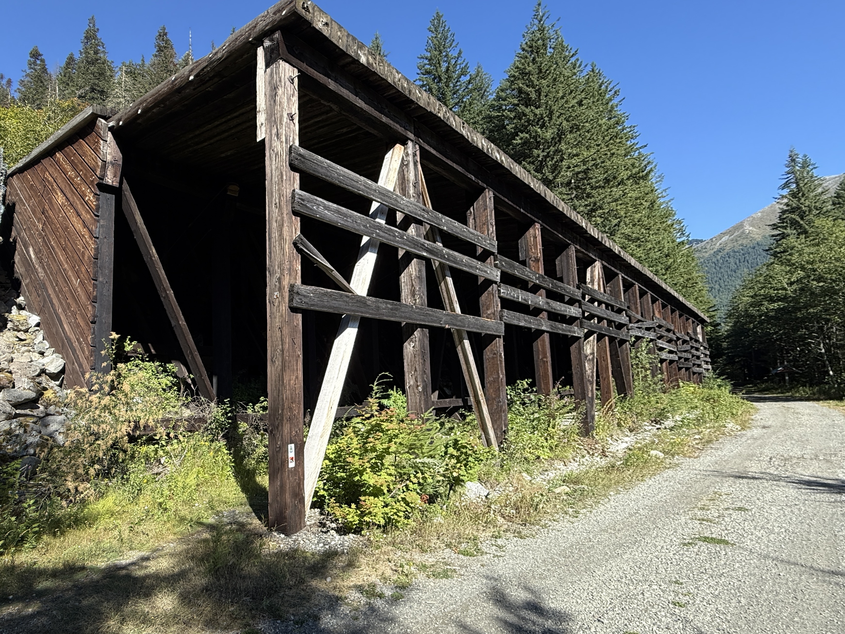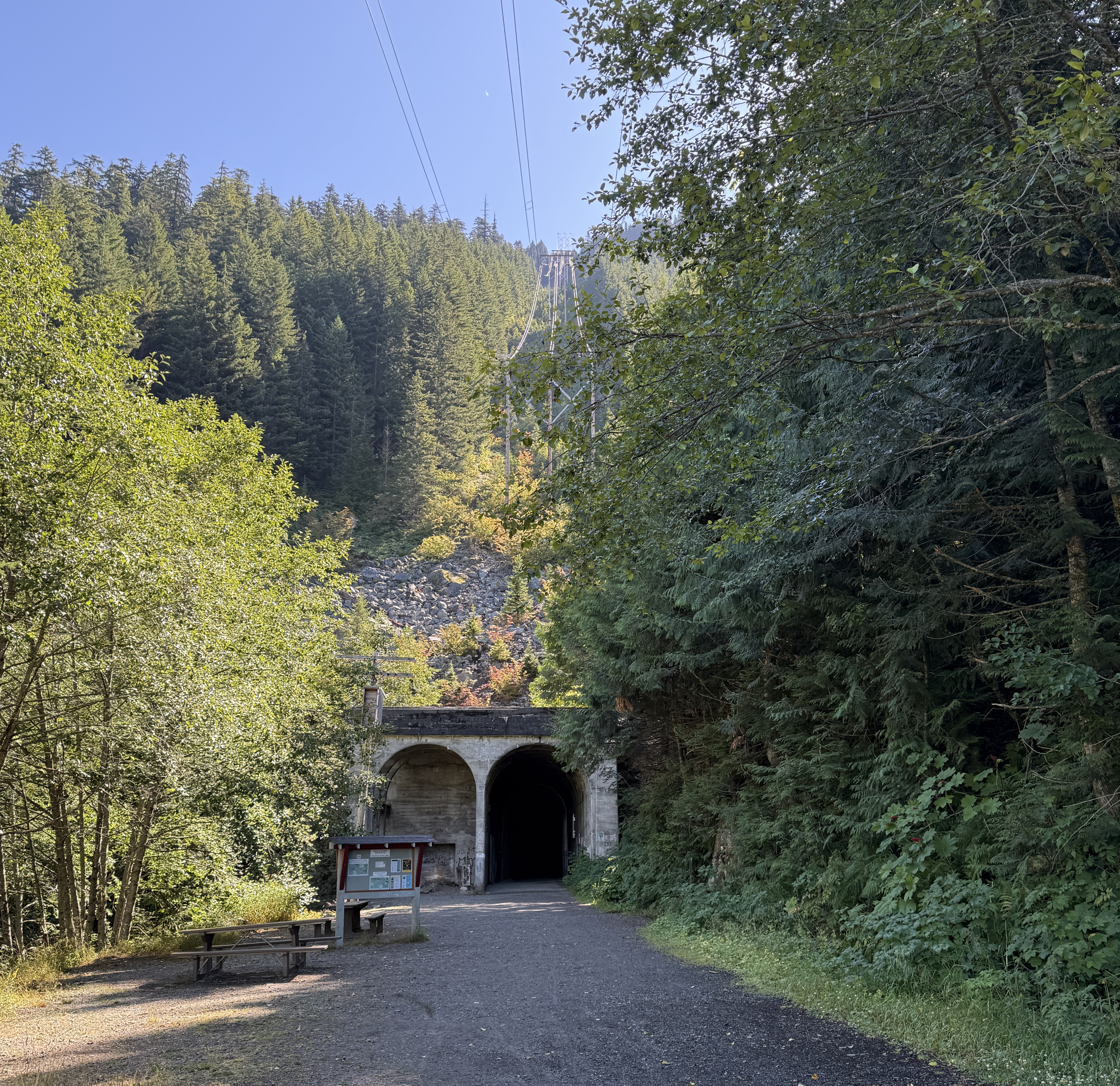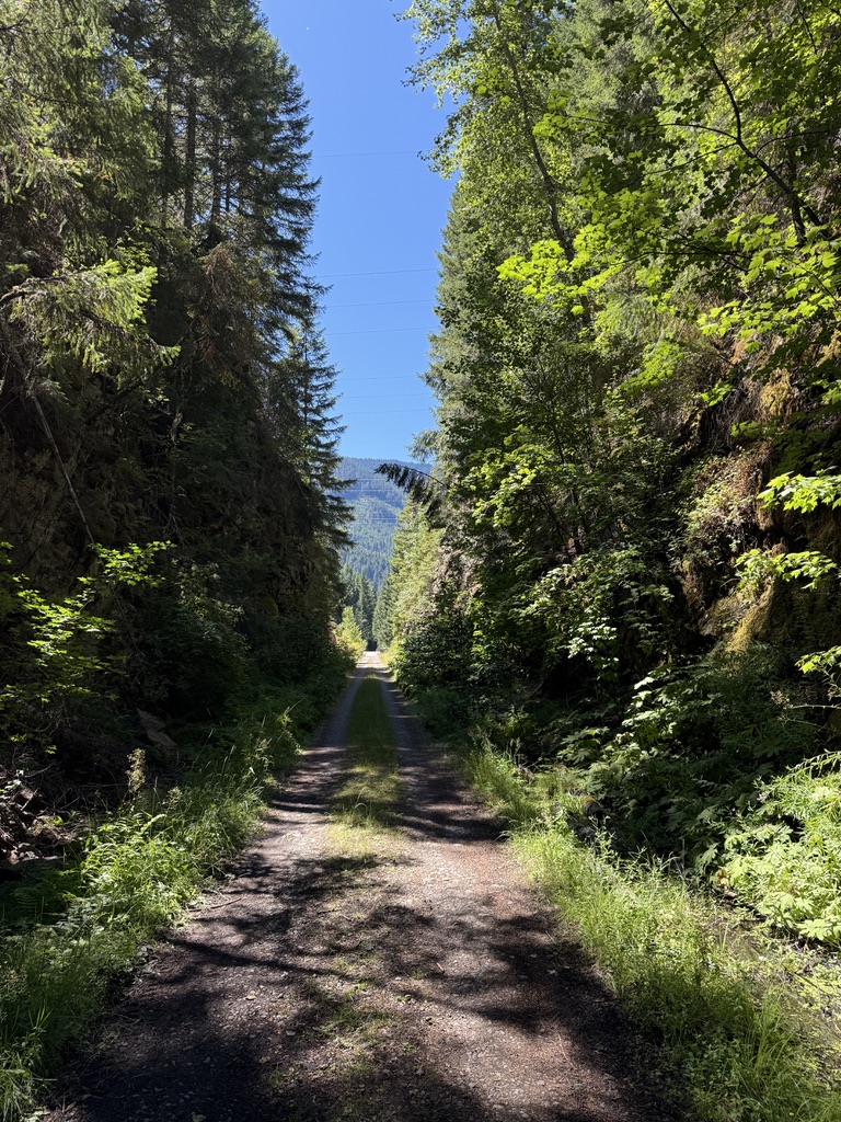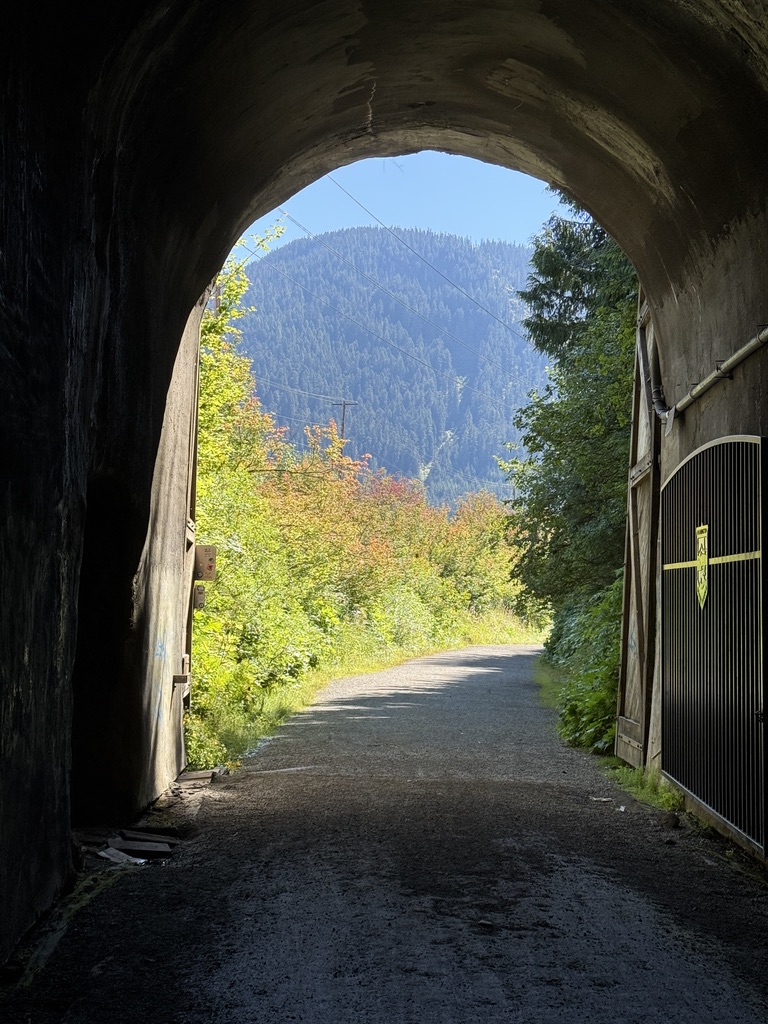 We continued on PTCT. Almost a landmark, a big wooden structure stood right next to the trail. It was used to stop avalanche from covering the railroad. We reached a tourist attraction Snoqualmie tunnel, a former railroad tunnel, now the longest bike/pedestrian tunnel in the US (2.3 mi). It is peach dark inside. You’d need a light to go through. After that we refilled our water bottles at Hyak, one of the many former rail stations along the former Pacific railroad, now PTCT. Unlike others that were abandoned after the railroad was no longer used, this one is well maintained with restrooms and water fountains for people to visit the tunnel. We passed more trestles and bridges over the Yakima River. The changes in the landscape from forests to semi-desert was clearly visible.